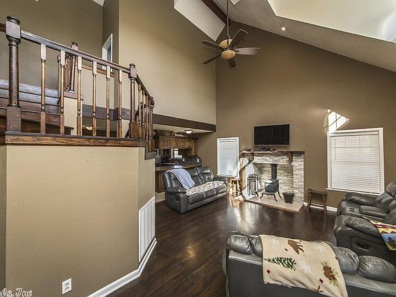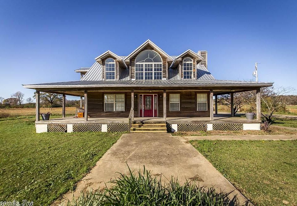 Rustic home with wrap around porch to enjoy! Metal roof only 2 years old! Home has 2 bedroom downstairs and master and additional bedroom upstairs. Master features private balcony to enjoy the evening sunsets! 5 acres crossed fenced for horses plus plenty of room for whatever your heart desires! 2x6 walls for good insulation also. Kitchen is very nice with custom cabinetry and gas stove (propane). Flooring only 4 years old. 16x24 loafing shed plus 12x8 storage building.