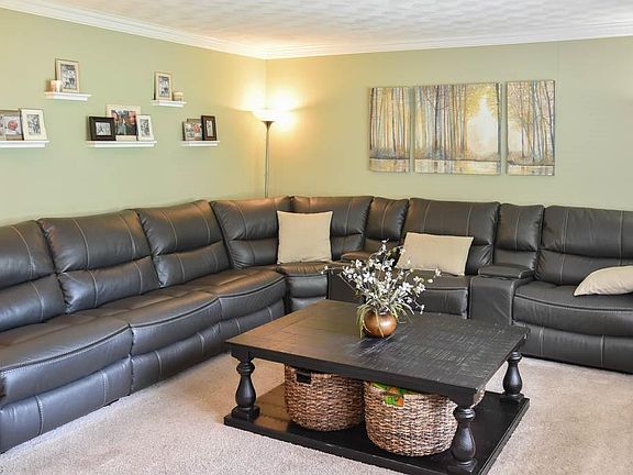 Conveniently located 3 bedroom, 1.5 bath ranch on nearly an acre! Step inside the sun-filled, spacious living room with a large picture window. Prepare your favorite dishes in the lovely kitchen with a breakfast bar, dinette, new faucet, new sink, tile backsplash and fully applianced with stainless steel refrigerator, over the range microwave, dishwasher and oven/range! Down the hall, the master suite offers a private half bath and 2 closets with laundry hookup in 1 of the closets. There are 2 additional bedrooms and a recently updated full bath with double sinks, new tub, new floor and new commode. Dimmer lights in all the bedrooms plus hardwood floors under the carpet. Throughout the house, youâll love the crown molding, white trim, replacement windows and lots of storage/closet space. Partially finished, huge lower level with glass block windows and a large storage area with workbench. Basement has been waterproofed and has transferable warranty! 2-car attached garage, too. Enjoy the great outdoors from your screened porch overlooking the enormous backyard with a fire pit and mature trees. Absolutely wonderful setting! Come see all this home has to offer!
