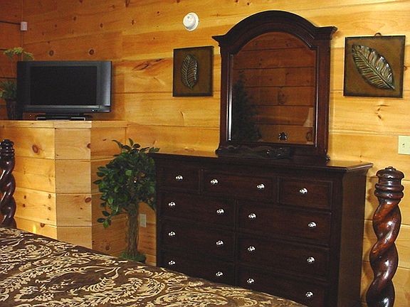 Step into your beautiful Mountain Cabin. This cabin has 2 master suites on the main level, Another Master suite on the lower level, and a bonus room with an attached bath also on the lower level. Each bedroom has it's own private access to the covered porches. The cabin sleeps 10 comfortably. Owners added a new queen size sleeper sofa just recently. The porch on the main level is a spacious wrap around that lets you take in views from your favorite spot. Perfect for all who have the wonderful opportunity to stay here. Large great room with living room and dining room with a wall of windows overlooking the mountain views, vaulted ceilings, exposed beams and wood floors. Recreation room on lower level with pool table and arcade game. Hot tub is located on the lower deck for you to relax and soak your troubles away. Easy parking and close to area attractions in PF and Gatlinburg. New well, liner and pump replaced in 3/2016 and cabin was stained in 2017.