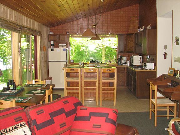 This spectacular property is located on Big Sugar Bush Lake. The lakes great water quality & natural shoreline with a 14 acre DNR island will amaze you! The home is located on one of the best lots on the entire lake with 350 ft of lakeshore. A cute 2 bdrms/1bath cottage home has an open floor plan that includes windows, windows, windows & views, views, views! Highlights are a Jennaire cooktop in a very open bright kitchen, a full wall rock fireplace, pine ceiling. Boathouse & deck on the water!