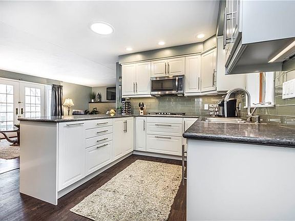 *BEAUTIFUL all brick ranch on a park-like 1.67 Acre lot in the Center Valley School District. Privacy galore, surrounded by 1000 acres of forest yet you are just mins to all of the Center twp amenities/shopping & Restaurants. Be at the PGH airport in 12 mins. & Robinson twp. in 20 mins/30 mins to Dowtown PGH. But you get to enjoy the LOW beaver co. taxes. Step in to the Bright & ALL NEW kitchen w/breakfast bar, All appliances stay~ OPEN to the gorgeous Living Room/Dining room w/gleaming hardwood & Gas Fireplace for those cozy evenings. French Doors lead to HUGE deck that overlooks the expansive backyard! ALL New Full Main Bathroom~Main 2 car garage being used currently as gym but could be converted back easily or finish that space. Lower Level is Huge, makes a great in-law,teen or guest suite w/Family room w/fireplace, Updated Full bathroom, Bedroom & Kitchen/dining area. Also huge storage room 33x11 w/access to yard & LL covered patio. 2 Car detached garage!! Home Warranty included