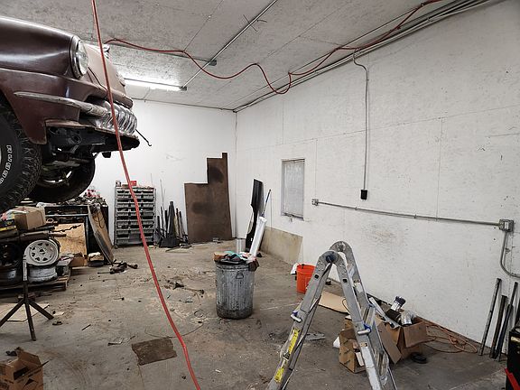 43'x43' shop/storage space with bathroom. Two 12'x10' overhead garage doors. Monthly rent of $1,400 includes heat. Available 12/1/24. Owner pays for heat. Rent paid monthly via cash or check.