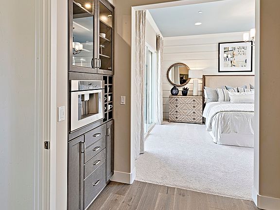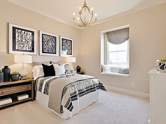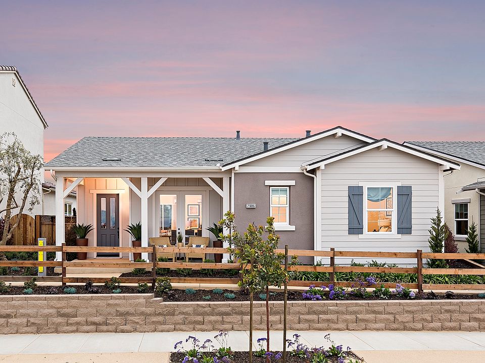 Bardin is a single story home with a darling front porch and spacious great room. The kitchen is positioned at the heart of the home and features a pantry, large center island, and ample counter space. Located just off of the kitchen are bedrooms and a bathroom all with front-facing windows. The Owner's Suite includes a large walk-in closet, dual sink vanities, and optional sliding glass door access to the covered patio.