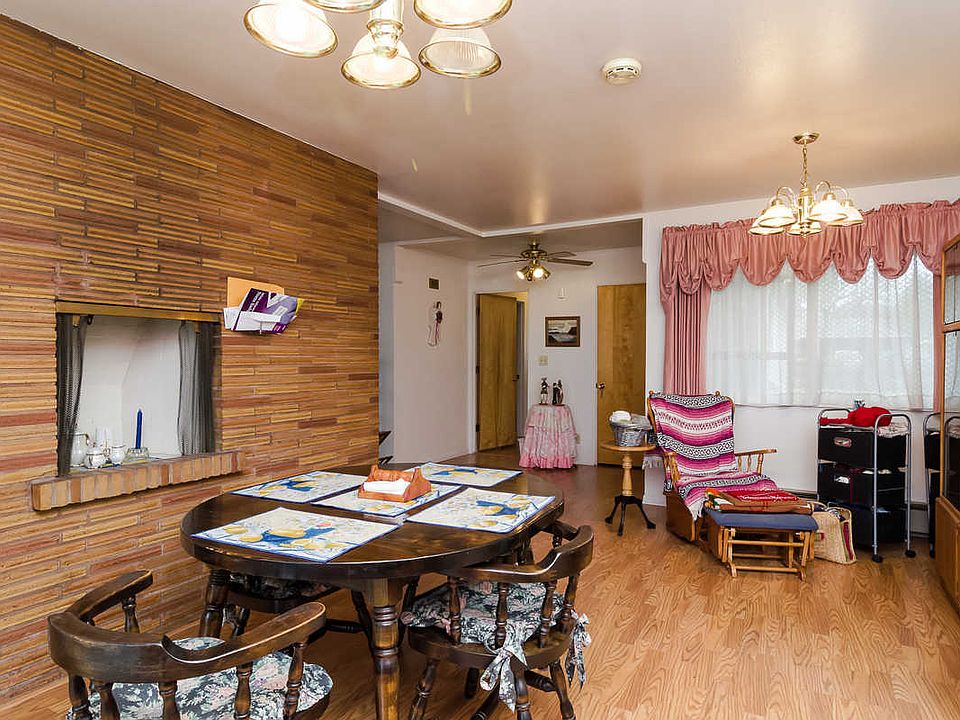 Great single level home with spacious floor plan. Fireplace in living and dining room. Kitchen with eating bar. Large sliders to backyard in dining room. Indoor utility. 1/3 acre lot. Covered patio, fenced yard, gate to backyard off side street, large covered structure. 2 car garage and 2 car carport. Low taxes. Lots of potential with a little TLC.