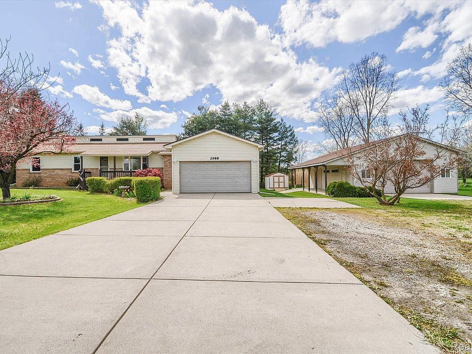 This beautifully well-kept ranch is situated on a spacious 1.3+ acre lot featuring 3 bedrooms, 2 full bathrooms and a 32'x50' pole barn! Conveniently located in Hadley Twp the home includes a large 13'x22' family room with a gas fireplace and door-wall leading to the deck/private backyard. Open kitchen and dining area with another door wall and plenty of cabinet space! The living room is located to the front of the home with a large window offering lots of natural light. All three bedrooms are nicely sized. The master bedroom has an attached bath that has been recently updated. Downstairs the 1,200 sq ft unfinished basement that offers lots of potential. High ceilings and dry, this basement is ideal for finishing. The oversized 2 car attached garage has lots of depth for extra storage. Outside you'll find the pole barn which includes electricity, automatic doors, a cement floor and a 12' ceiling. The back deck has all new railing and stain. A gorgeous backyard and rear deck offer a great place for your summer get togethers. There is also a 10'x12' shed. Updates include a new roof (2024), carpet, paint, outlets, deck railing and more. Natural gas and cable internet and only a few minutes' drive to either I-69 or M-24!