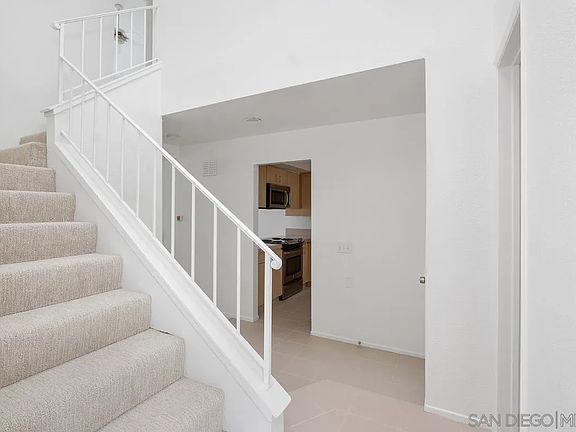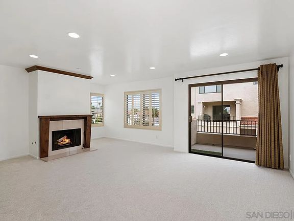Beautifully upgraded end-unit tri-level townhome in La Costa, Carlsbad! Step inside to fresh paint, new carpeting, and peek ocean views! Large family room with cozy gas fireplace, custom mantle, recessed lighting, plantation shutters, and west facing ocean view balcony. Kitchen is equipped with ample cabinet space and stainless steel appliances. On the third level, you'll find two en-suite bedrooms with soaring ceilings. Primary suite includes additional west facing balcony, walk-in closet, ceiling fan, and attached bath with tub. An oversized laundry room/storage area offers additional convenience. Two-car attached garage plus an additional patio space in front. Community pool & spa for residents to enjoy! This prime location is just a short drive to the beach and offers easy access to excellent dining, shopping, and entertainment options. Top rated school district!