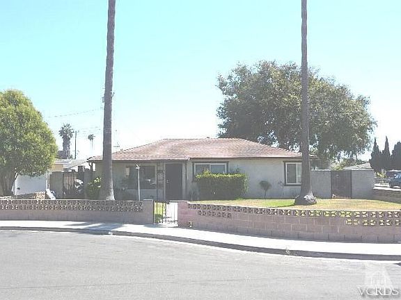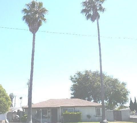 Very nice three bedroom home on corner lot with loads of extras. Remodeled living room, kitchen and dining area with original wall removed making a bright a spacious living area open to the kitchen with a kitchen breakfast bar. Kitchen with oak cabinets that look like new. Gas oven/range and dishwasher, (refrigerator stays without warranty.) Forced air heating installed and air conditioning too! Direct access to garage with sectional door and garage door opener. Additional covered parking adjacent the garage with RV parking possible. Storage tent stays. Nice back yard with high block wall fence and manicured front yard with a low block wall fence. Roof installed in 2002. Two huge palm trees in front yard identify this wonderful home plus additional shade tree in back. Other features include a water softener and a water purifier. This home was meticulously maintained but now needs someone to do a cosmetic update!
