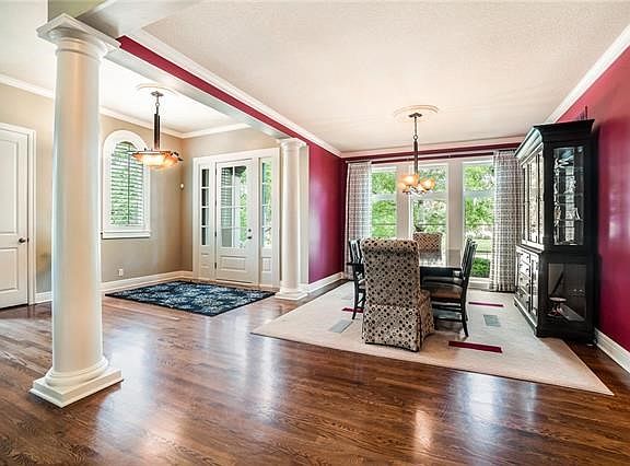Welcome home to this stunning Dan Smith "San Remo" plan with nearly 5000 sf. The entry showcases a sweeping iron staircase, a formal dining room and cozy living room with gas log fireplace. Enjoy cooking in the gourmet kitchen with SS appliances including an Advantium microwave, built-in wall oven with warming drawer, a gas range with pot filling feature and a new dishwasher. The breakfast room opens to a covered deck & adjoins a hearth room with gas log fireplace. A private office w/glass pocket doors is off of the hearth room. The large laundry room comes with multiple built-ins for additional storage. Relax in the enormous master suite w/custom millwork on the vaulted ceiling, a gas log fireplace, covered martini deck, a spa-like bath w/whirlpool tub & huge w/in closet w/dressing table. Three additional bedrooms are on the upper level. Entertain in the professionally finished walkup basement with the convenience of a granite-topped wet bar with ice maker, dishwasher, trash compactor & refrigerator. There is a huge built-in media center, a 5th bedroom and full bath. New exterior paint and some interior paint. Three car garage w/epoxy finished floors & 2 walls of cabinets for storage. Enjoy the metal fenced yard with mature landscaping. You are close to Gezer Park, Prairie Fire shops & restaurants & award winning Blue Valley Mission Elementary, Leawood Middle and BV North schools. 2022-06-26