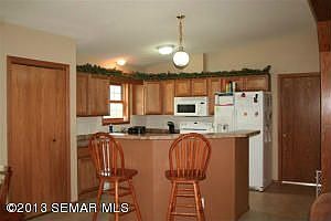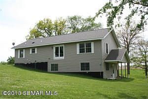 Country living with a view !Beautiful setting with mature oaks shading the lawn & pasture areas. Nice kitchen with center island open to the dining and living areas. Master bedroom with en suite and walk in closet. An additional main floor bedroom and full bath plus laundry- mud room area. The lower level has 9 ft ceilings, walk out from the family room, office space plus large bedrooms, generous closet space and 3rd full bath. 30 x 60 steel machine shed. Well & Septic new in 2005. Superlocation only 3 miles west of Harmony on hard surface road. Interior Amenities: Ceramic Tile, Kitchen Center Island, Kitchen Window, Master Bedroom, Master Bedroom W/I Closet, Mud Room, Open Staircase, Pantry, Vaulted Ceilings, Walk-in Closets, Washer/Dryer Hkups Exterior Amenities: Driveway-Gravel, RV Parking Outbuilding: Pole Building Mechanicals: Fuel Tank (Rented), Water Heater (Electric), Water Softner (Owned) Road Frontage: County, Paved