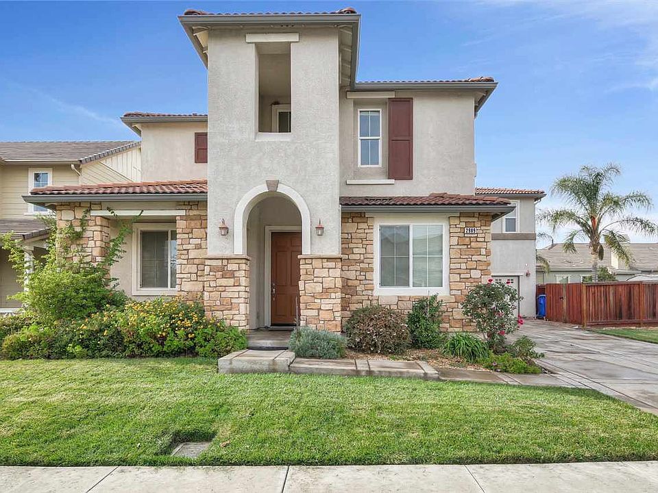 Come see this beautiful 5 bdrm, 3 full bath home located in Brentwood. Perfect for a large family. Freshly painted. On the first floor: One large bedroom with a full bath just outside the door. Could be for mother-in-law or office. Two living rooms and a formal dining room. Also a nice large family room off a large kitchen. Kitchen includes gas stove, pantry, oak cabinets, island with a sink and a breakfast bar in addition to a sunny breakfast nook. Granite tile counters. Family room includes fireplace. Hardwood floors throughout downstairs. Ceiling fans throughout most of the rooms. Second floor includes 3 bdrms and Master Suite. Master Suite has a good size semi private retreat. It also has a large bathroom with two sinks, a jetted tub and a separate shower for two. A big walk in closet. Laundry room includes washer and dryer. Low maintenance backyard has fruit trees a shed and a hot tub included. Please bring your clients. The price is right.