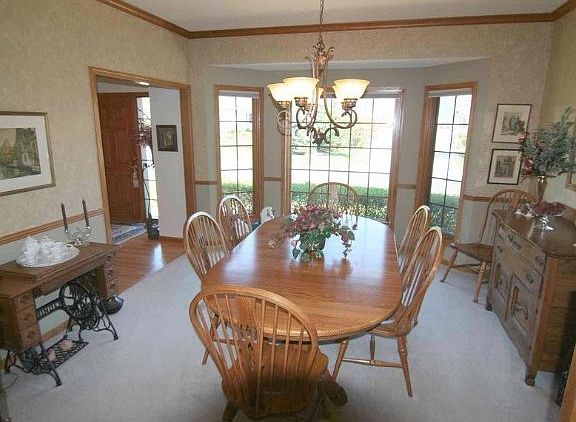 Stunning full brick front with copper bay. Large footprint with open floor plan. Hearth room kitchen with double sided fireplace, new stainless steel appliances and hardwood floors. Formal dining room with butler's pantry. Four bedrooms up with lower level potential. Deep useable yard with wooded backdrop. (Internet 5822694-9/4/2012)