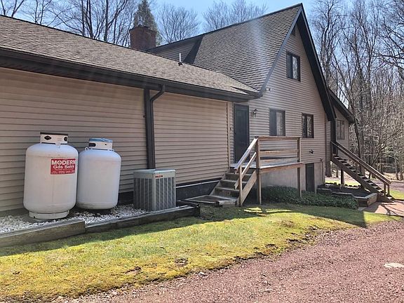 3BR/3BA Mountain Retreat Offers Central A/C, offers 8.5 Acres nestled around PA State Game Lands! Luxury Living includes heated tile family room floor, hardwood floor and wood trim wall and ceiling accents! Contemporary A-Frame boasts 2 Car Garage and 768 extra sq' with a 24' X 32' Detached Propane Heated Garage for extra vehicles, with its own car-port in rear! 10' ceiling height inside garage! Both Garages = 1,218.49 sq' !! Generator keeps things going at the house if needed! Hot Tub included! Turn Key Ready will include furnishings!