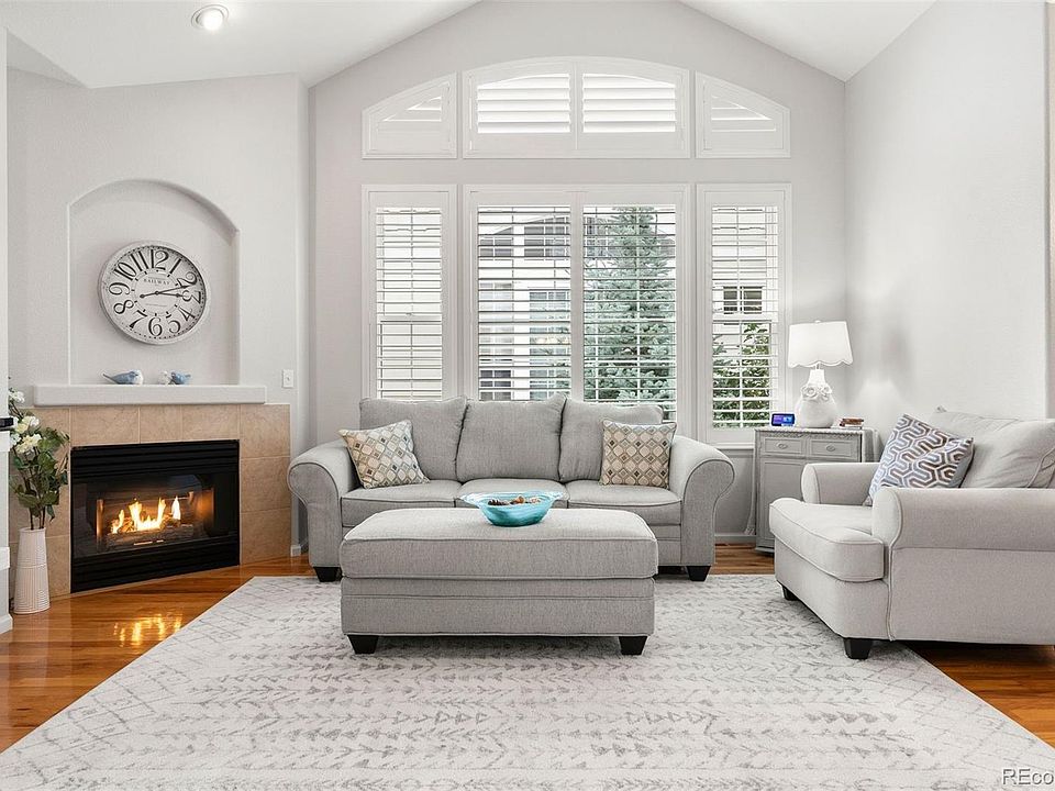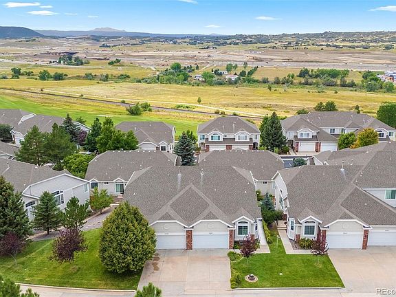 Discover low maintenance living in the heart of Plum Creek with this exceptional townhome featuring seamless main floor living. Flooded with natural light, this home boasts soaring vaulted ceilings and rich hardwood flooring throughout an open floor plan perfect for entertaining. The recently updated gourmet kitchen showcases 42” maple cabinets, high-end stainless-steel appliances, elegant quartz countertops, neutral backsplash, and an under mount sink. The main-floor primary suite serves as your personal retreat with cathedral ceilings, a private balcony offering mountain views, spa-like five-piece bathroom, in-suite stackable washer/dryer, and expansive walk-in closet with custom built-ins. The walk out lower level is easily accessed with a motorized stair chair and features a spacious family room, large laundry room, two guest suites, full bathroom, and abundant storage. Outside, enjoy your private fenced in patio with raised garden beds. This prime Castle Rock location puts you minutes from prestigious Plum Creek Golf Course, historic Downtown Castle Rock’s charming shops and restaurants, scenic Plum Creek Trail for walking and biking, plus endless retail and dining options. This rare combination main floor living, thoughtful updates, and coveted location creates an exceptional opportunity in one of Castle Rock’s most desirable communities. Handicap accessible features include a motorized stair chair and entrance ramp both stay with the home. The HOA covers maintenance of the exterior structure, front yard maintenance and irrigation and snow removal. Updates include newer Champion windows w/ comfort low E glass, Hunter Douglas plantation shutters and black out verta glide blind, furnace, A/C, hot water heater, new kitchen counters, tile floors and backsplash. The spacious study on the main floor could be converted to an additional bedroom. Enjoy mountain views off the primary balcony including views of the Devils Head “The Sleeping Indian”.