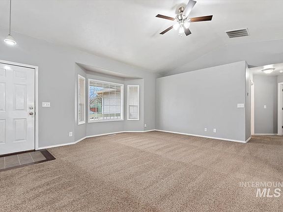 As you walk inside this charming single level you are welcomed by an open, split-bedroom floor plan, vaulted ceilings, and fresh interior paint. Great backyard with room to play, room for a garden, mature trees to give you privacy, and a covered patio. Primary suite is tucked away nicely and includes an updated bathroom with gorgeous tile floors, a new vanity with double sinks, and two closets. Nice kitchen with pantry, tile floors, tile backsplash, and fridge included. Furnace and A/C only 3 years old. Make this delightful house your new home!