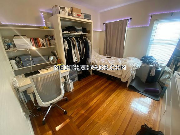 4 bed 1 bath apartment close to tufts university, dining, nightlife, public transportation, and more. This apartment has hardwood floors, laundry in the basement, and driveway parking.