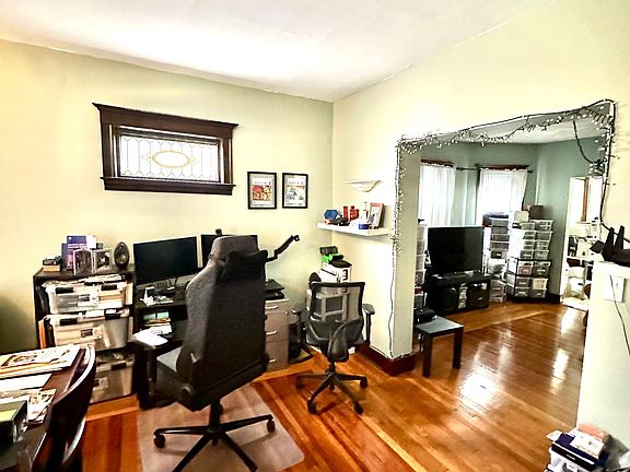 5 room 2 bed. Classic layout, with open living room/ dining room, nice hardwood floors, newer windows and a fresh coat of paint. Updated bath and updated eat in kitchen with washer/dryer and DW on wheels. Front porch and huge back enclosed porch. (Reference #141093)