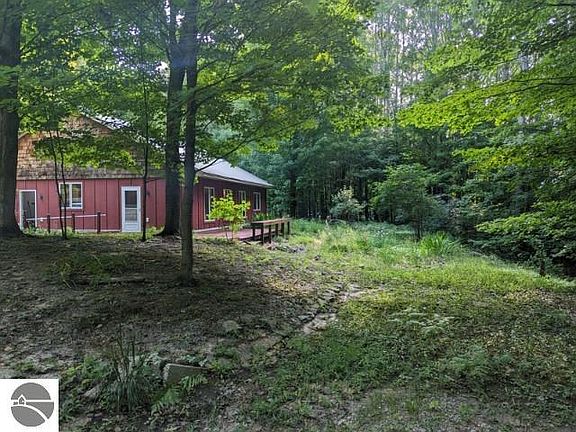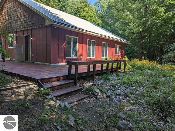 This 2008-new 1600 s.f. cottage home sits on a 3 acre lot in a park-like setting near Frankfort-Elberta and Lake Michigan (2.3 miles), Crystal lake boat launches and beach 1.3 miles), Betsy River game refuge, river and trails (1.2 miles), and nearby to Sleeping Bear Dunes and other attractions. The home is a super-insulated with low utilities and is accessible (ramps, walk-in shower). The newly painted interior and tinted concrete floor is ready for a personal touch. The private well and septic were both inspected by the county in August. The circular drive and yard is over-flowing with fruit and flowering bushes, an apple tree, and awesome plants and spices planted by an avid nature lover. This home would make a good vacation getaway, starter home, summer rental, or a builder's dream with more than a 10,000 s.f of ready-to-build clearing. Generous space around the building means you can easily expand or landscape for little cost. This super-insulated wonder was built for a long-time Alaskan to Alaska standards and is a one-of-a-kind find in this area. Features include: * 12" thick walls with dense pack cellulose walls up to R45. * Double wall construction (little continuous wood from inside to outside boosts the R value) * High performance air sealing (the blower door tester said it was the tightest house he'd ever tested). * HRV Heat Recovery Ventilator is installed. * High performance wood double pane windows with low-e coating and argon filled. * Insulated ICF stem wall and a slab on SIX inches of foam * In-slab radiant heat heated by a simple 500 dollar hot water heater. The average electric cost was around 180/month for all electricity: range, dryer, lights, AND electric heating. No air conditioning is required due to a tight building with high R value and solar shading. The heating system is maintenance-free. Construction drawings and photos are available.