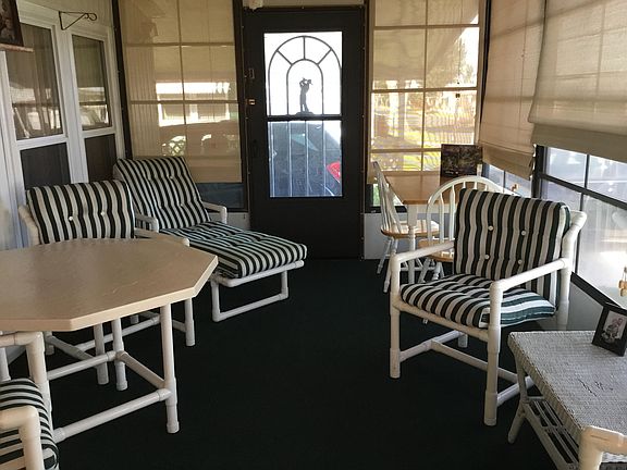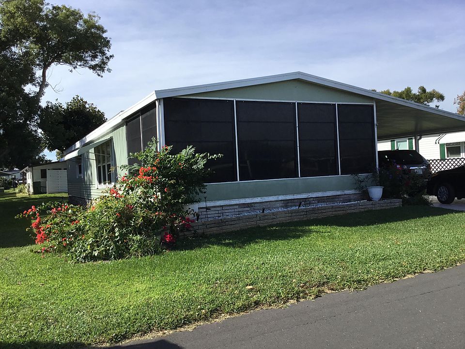 Lovely double wide with water view Two bedrooms two baths Mstr. Bath very large with double sinks recent faucets and two closets Guest bath has tub and shower Good size kitchen with large breakfast bar New carpeting in both bedrooms Large lanai with blinds Two car driveway Storage shed with washer/dryer plenty of shelves for storage New roof 5 years ago All new tilt out windows 5 years ago Well maintained Asking $38,500 Lot rent$469.93 month includes trash removal 1980 Sherwood 52x24 Golf Cart included Fully Furnished