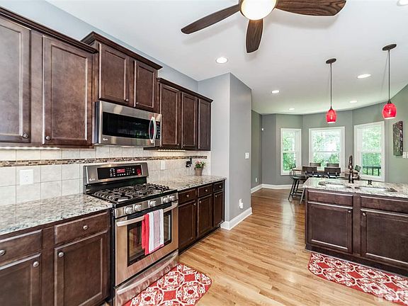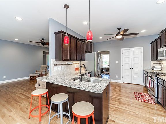 Ranch Raleigh home w/ custom touches perfect in many ways. Stunning hard wood floors, upgraded tile work. Welcoming front entry. Custom master shower w/tile inlay-seamless door-Moen fixtures. High-end lighting package. Smart zone HVAC, security system & camera. 3 car garage, extra cabinets & storage, finished industrial floors & insulated garage doors. SS appliances & granite in kitchen w/ huge walk-in pantry. Screen porch & grill deck-also a patio. Walk in crawl space w/work bench. Sod entire yard. Home.