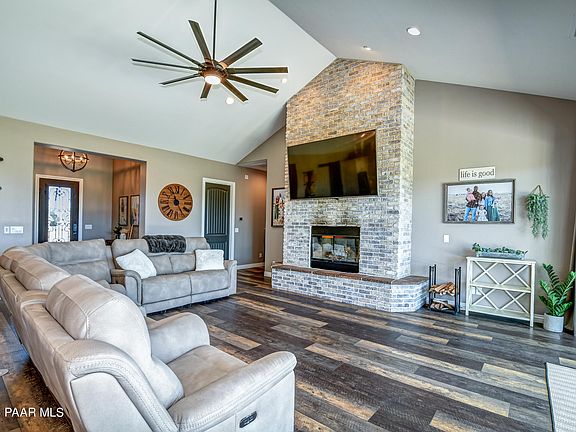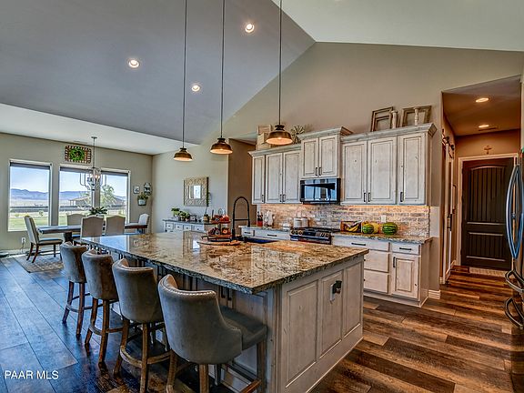 Gorgeous Custom Built Home in one of the Best Neighborhoods in Chino Valley. Setting on a beautifully landscaped 4 acre corner lot that borders open Ranch land. Inside you will find a Beautiful Open floor plan with vaulted ceilings, wood burning fireplace and Stunning Kitchen with a huge center island and Granite counter tops. Luxury Vinyl plank flooring through out and 5 bedrooms and 4 bathrooms. There is also a dedicated Office space that could serve as a 6th bedroom and a spacious laundry room with hook ups for double washers and dryers. The oversized double deep Garage will hold at least 4 cars and the Detached Garage/workshop will hold another. the Backyard is fully fenced and beautifully landscaped with real grass and sprinkler sys. Private high producing well, NO HOA!!!