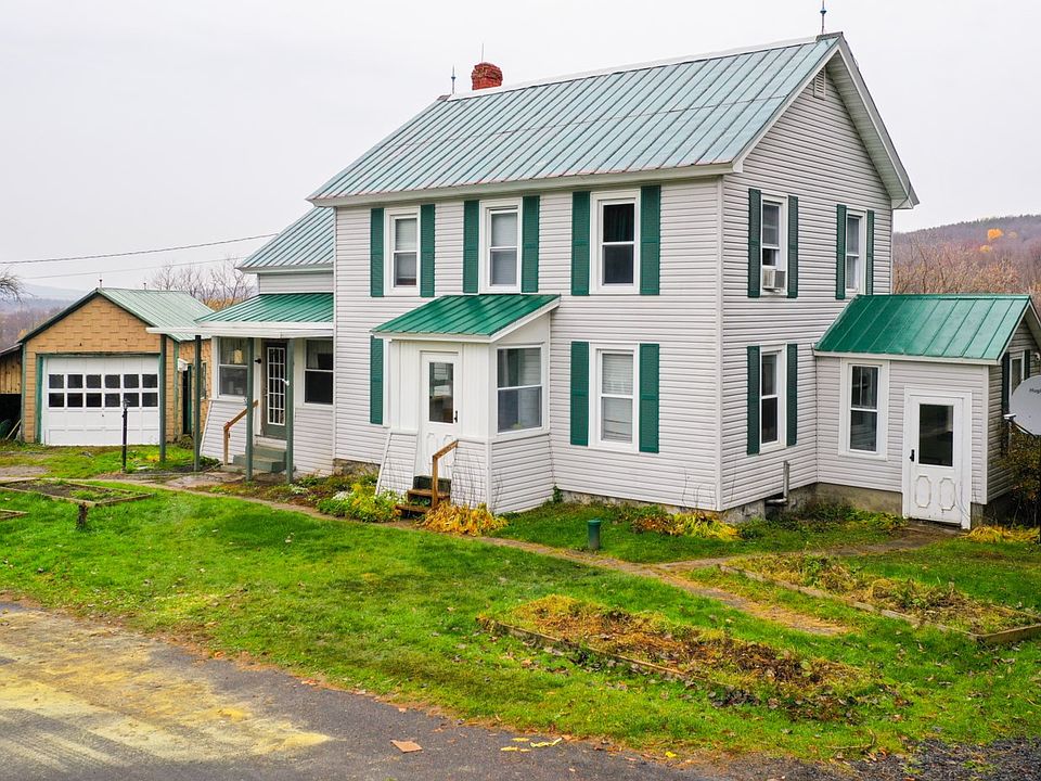 Five acres and independence! Fully remodeled 1860 farmhouse with attached workshop. Year round creek. Surrounded by over 1000 acres of state land. Property is the last before the road becomes seasonal, so it is extremely private and quiet. Beautiful views everywhere. Heirloom apple orchard on the property is well maintained and produces abundant crops annually. Raised beds in place for vegetable gardens. House is south facing for excellent natural lighting and passive solar gains. Jotul woodstove easily heats entire house even in the coldest weather, but there is also a forced hot air furnace for convenience. Multiple outbuildings, including garage with attached woodshed, two story garage, chicken coop, and large recently reconstructed post and beam barn with lofts and pens. Land has been maintained without chemicals for over 20 years, so it could be easily certified organic.