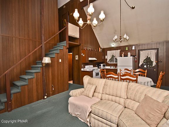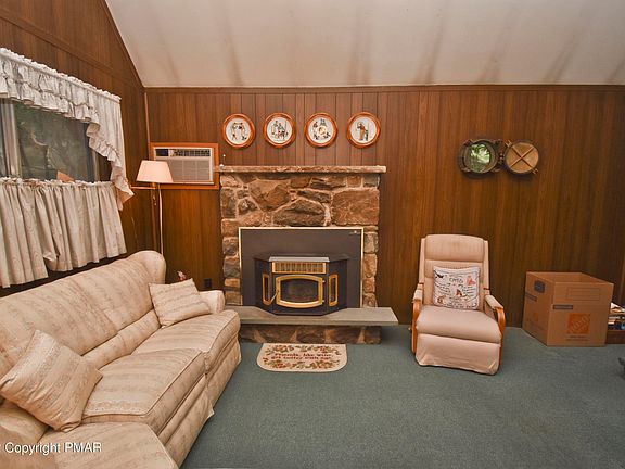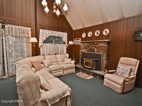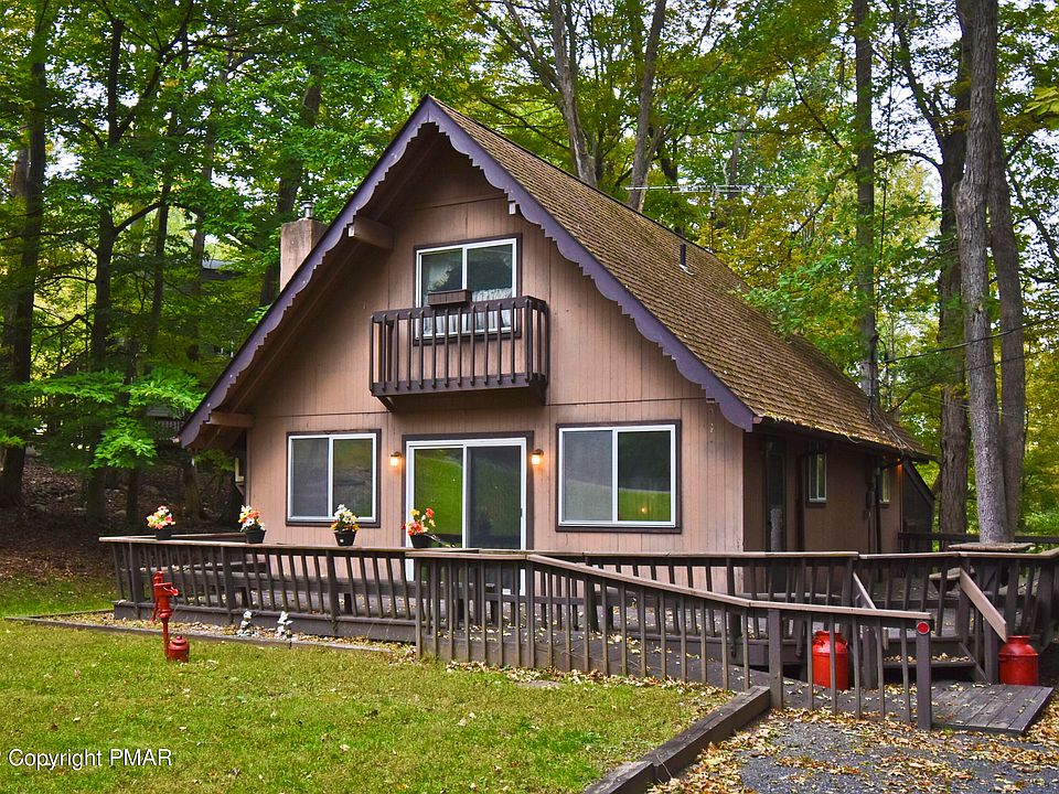 Located just 15mins to Delaware Water Gap & 90mins to NYC is this 4-bedroom Chalet Home! This home is a GREAT starter home or the PERFECT GETAWAY. The OPEN concept 1st floor features the Living Room that has high cathedral ceilings making the space feel very open, a STONE FIREPLACE for those chilly winter nights, & is open to the Eat-in Kitchen. 2 nice size bedrooms including the Primary w/ double closets & full bath that has UPDATED vanity/fixtures complete the 1st floor. The 2nd floor features 2 additional bedrooms & half bath. This home also has a LARGE WRAP-AROUND DECK w/ built-in benches perfect for outdoor entertainment, a SCREEN-IN PORCH to enjoy the Pocono's breeze, & a storage shed for all your outdoor equipment. CALL TODAY to come see this lovely home.