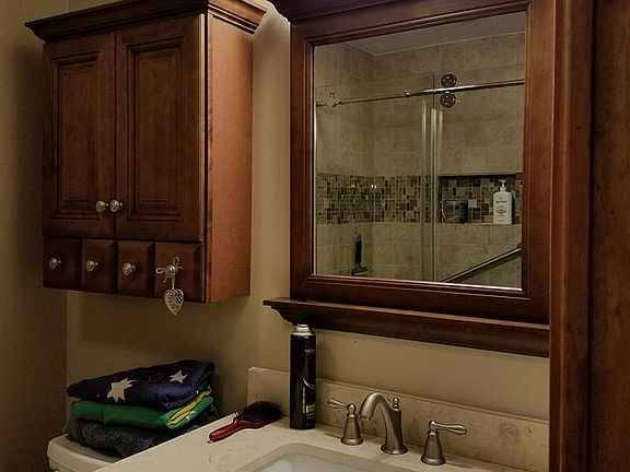 7/14 PVC Vinyl Fence by R&C Fencing, 7/14 12' x 16' Carriage House Shed 12/16 Full remodel of Master Bath Diamond FreshFit Ballantyne Freestanding Mocha with Ebony Glaze Bathroom Vanity, Mirror and Wall Cabinet. Marbled Beige Quartz Under mount Bathroom Vanity Top. American Standard Champion 1.6-GPF Chair Height Toilet. Frame less Satin nickel Sliding Shower Door Tiled shower with river rock pebble bottom. 8/17 New 210 electrical amp 10/17 TrafficMASTER Allure Ultra Vinyl Plank Flooring though out house 10/17 Full remodel of Main bath same items used from Master Bath remodel. Kitchen Bertch Cabinets from Roanoke Woodworking. 14' by 16' covered deck with cathedral ceiling with power outlets and ceiling fan. 6 panel solid core doors.