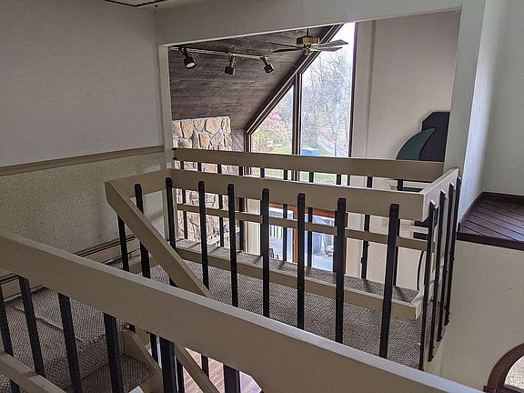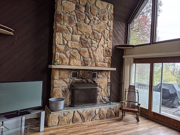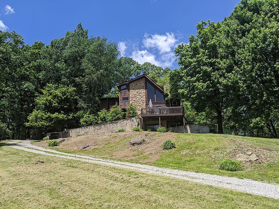 For more information call or text me at 724-841-1370 Great California Contemporary fixer upper. Large living room with 2 story ceilings and grand stone fireplace. Master suite with walk-in closet, full bathroom, and private balcony. Beautiful private setting up on the hill. Finished, walk out basement with a second fireplace and sliding doors out the the front patio. All sitting on just over 2 acres!