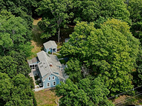 $25,000 price reduction has this property ready to purchase. Open House Saturday, September 27 1:30-3:00. Set gracefully above the road on a beautifully treed lot, this idyllic antique home enjoys year-round light, morning sun in the kitchen, and glowing southern and western exposure for sunsets off the back deck. North-south positioning also brings welcome shade in warmer months. Inside, the large living room offers a cozy wood-burning fireplace. The kitchen and family room form a central gathering space. Upstairs features a spacious primary bedroom with exceptional views of the rear of the property. Separated from the primary are three additional bedrooms which would also be ideal for use as guest bedrooms and offices. The first floor blends seamlessly with the outside. A front patio, rear screened porch, spacious side deck and private yard are perfect for relaxing or entertaining. Just beyond, a separate studio building offers flexible use as an office, gym, creative space, or gathering spot. Stellar work, art, and storage opportunities abound. The detached barn includes a well-lit workshop with natural and artificial light, 2 garage bays, and overhead storage with a cedar closet. A separate, lower bay connects directly to the house via an underground passageway. Surrounded by tranquility yet minutes to Exeter, Hampton, Portsmouth, and Newburyport, this rare offering combines sunlight, privacy, and indoor-outdoor functionality perfect for living, working, and unwinding.
