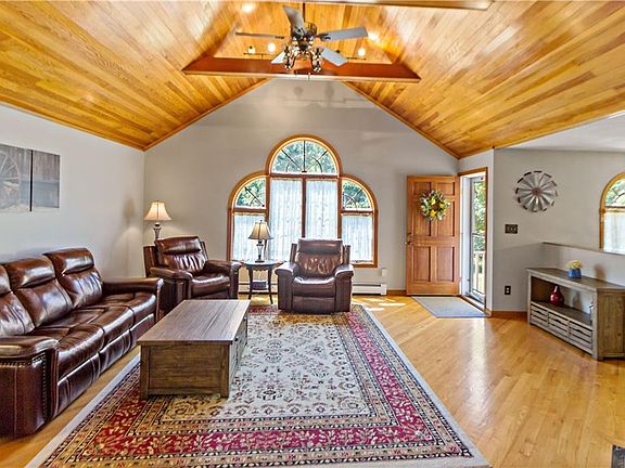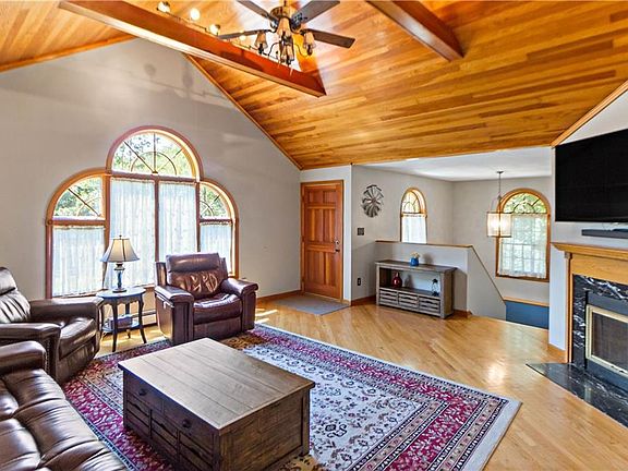 Beautiful renovated ranch set back for privacy. This unique home features gorgeous wood cathedral ceilings with exposed beams in the living room and the master bedroom. Kitchen includes custom cabinets with granite counters. Hardwood throughout 1st floor. Separate formal dining room, sunroom, 1st floor laundry, finished basement with 2 rooms and a half bath are some of the amenities you'll enjoy in this lovely home! The outdoor patio is great for entertaining and opens to a secluded backyard. There is also a detached garage roomy enough for 2 cars and ample storage! Call for a showing. Masks are required. Seller to find suitable housing