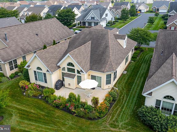 TRADITIONS OF AMERICA - 55+ Community! Check out all the wonderful amenities this community offers: indoor and outdoor swimming pools, tennis court, putting green, shuffle board, clubhouse, fitness center, hot tub, sauna, game room, walking path and meeting/party rooms. This move in ready home sits on a private tree lined lot and features beautiful hardwood flooring, vaulted ceilings, quartz counter tops, crown moldings, decorative columns, wainscoting and chair railing. The bright and open floor plan offers a spacious kitchen with center island, quartz counter tops and dining area. Located directly off of the kitchen you will find the family room highlighted by vaulted ceiling and gas fireplace. Relaxing master bedroom with vaulted ceiling, sitting area, walk in closet and private bath with double vanity, jetted tub and a glass enclosed tile shower. An additional nice sized bedroom, full bath, laundry room and separate living room complete the main level. Covered front porch, attached front load 2 car garage, large rear patio and a nicely landscaped yard. This home also backs up to open space and the community walking trail. Call today to explore all of the wonderful amenities this home and community have to offer.