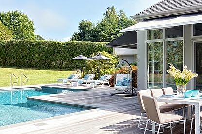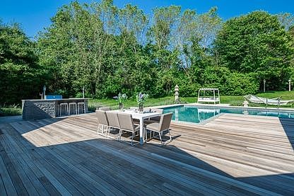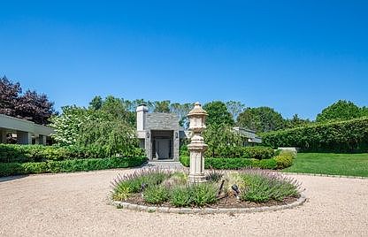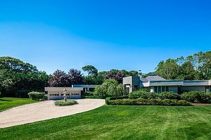 This Prime Georgica Estate section offering features a unique single-story footprint and chic all-new custom interiors located in one of the most desirable south-of-the highway enclaves. A long private drive framed by towering specimen trees, lush rhododendrons and green space leads to this stunning 3,060 sq. ft. contemporary recently designed by a noted architect. Once inside the massive entry, a series of hexagonal over-sized window walls define the fluid open living space. A decorative raised skylight tops the apex of the vaulted living room where a reflective glass tile double-sided fireplace and mesh link wall screen add visual drama. The interior details are a stylish interplay of sleek finishes, organic materials and custom elements. A pure white quartz kitchen island is beautifully paired with a textural tiled fireplace surround and bold geometric wallpaper in the adjacent dining room. With French doors to the rear terrace, the spacious master suite occupies it's own wing, with a richly hued bath and custom finishes. A relaxed hallway off the living room reveals a sunlit guest bedroom and bath with a sculptural petrified wood sink. Two guest rooms in the opposite wing share a bath with outdoor access to the pool. Ideal for entertaining large or intimate gatherings, the 1.1 acre manicured grounds offer multiple outdoor living spaces and a gorgeous 66 X 18 heated gunite salt water pool with a border of dense foliage for maximum privacy. Additional amenities include a large outdoor kitchen with grill and an outdoor shower. A 3-car garage is accessed by a covered walkway and wide circular drive offering abundant parking. Just minutes from Georgica Beach, this is an excellent opportunity for those with a keen appreciation for modern luxury.