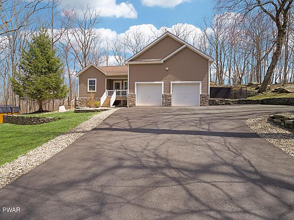 A perfect blend of elegance, comfort, and tranquility, located in a highly sought-after community in the area. Meticulously maintained and thoughtfully upgraded, this home is truly the best on the block, offering rare features and unbeatable value. As you arrive, the beautiful curb appeal welcomes you home, highlighted by a paved driveway, paver walkway, and a covered front porch. The detailed stonework beneath vinyl siding, landscaping, and LED lighting throughout the yard creates a stunning first impression. Step inside to discover a seamless flow of hardwood floors, crown molding, and custom finishes. The accent wall is the ideal backdrop for your entertainment setup, while the formal dining room boasts sliders that open to the beautifully hardscaped backyard. The kitchen is a showstopper, complete with stainless steel appliances, granite countertops, crown-molded cabinets, and more hardwood underfoot. Two spacious bedrooms on one wing with a full bathroom between them, complete with tile floors and a tile shower. On the opposite side, the primary wing is a true retreat - custom hardwood floors, walk-in closet, and a luxurious primary bathroom featuring a tile walk-in shower. Just outside the suite is a thoughtfully designed laundry room with a folding station. The fully finished basement is an entertainer's dream, featuring a custom-built bar and a second living room perfect for game nights or movie marathons. A gym area and room to add a future bathroom round out the space. Step outside and breathe in the peaceful vibes - this home sits on a landscaped lot with an enchanting pond, concrete patio, dog run, and no-maintenance landscaping. The shed on the second lot is ideal for additional storage. Comfort and convenience abound: central air, electric baseboard heat, water filtration system, generator connection, and Nest cameras. This is more than a home, it's a peaceful escape, rich in earthy tones and natural light, where every detail has been cared for.