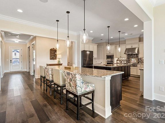 Will you be the lucky one? On a premier cul des sac street & only a year old, this Balsam w/Blueridge elevation & revised floor plan (no side courtyard) has only a flat 100 yard walk to the Twin Mills Club from your back door. Completely upgraded, designer colors/finishes, a lavish amount of options were selected: wine room, office w/double doors, hideaway w/custom built ins, large crown molding, media room (TV/sound system included), extended laundry/flex space w/desk, washer/dryer, plus upper & lower cabinets, Kitchenaid appliances, Jenn air gas cook top w/griddle, wall oven, refrigerator, 2 islands w/granite counter tops, under cabinet lighting, primary BR bump out and custom closets, rolling wall of glass to covered patio, FP, LVP flooring and tile throughout, bespoke stained glass window inserts, 4 ft. extended 2 car garage w/epoxy floor, garage frig & custom cabinetry for additional storage. Trilogy Membership includes Freedom Boat Club on Lake Norman plus award winning amenities