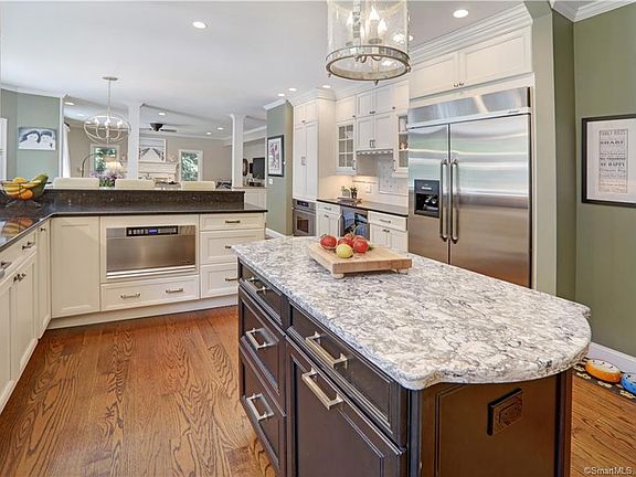 PRICED BELOW APPRAISED VALUE You must experience the SPECTACULAR Kitchen in this luxurious Colonial The Kitchen's architectural detail and high end tile and stone finishes along with the surrounding natural light make this space a joy. High-end appliances including convection ovens, built-in microwave, and Dacor range and refrigerator. The floor plan is open and offers seperate informal and formal spaces along with perfect places for work and play. It's a wonderful home for entertaining both inside and out. This beautiful property boasts many high-end details including hardwood floors throughout, office with built-ins and Palladian window, and closets with organizing systems. Large Master BR has elegant full bath in which to pamper yourself. Finished lower level has areas for play and exercise plus a walk-out to the backyard. Great level lot offers flat driveway and plenty of areas for entertaining and play. The setting is private yet in the middle of a great neighborhood and close to shopping and commuting. So many advantages to this home - large welcoming bedrooms, generator hookup in place, Eco-B system smart thermostats, full house water filtration and attached garage with workbench. This one checks all of the boxes SURVEILLANCE CAMERAS IN USE.
