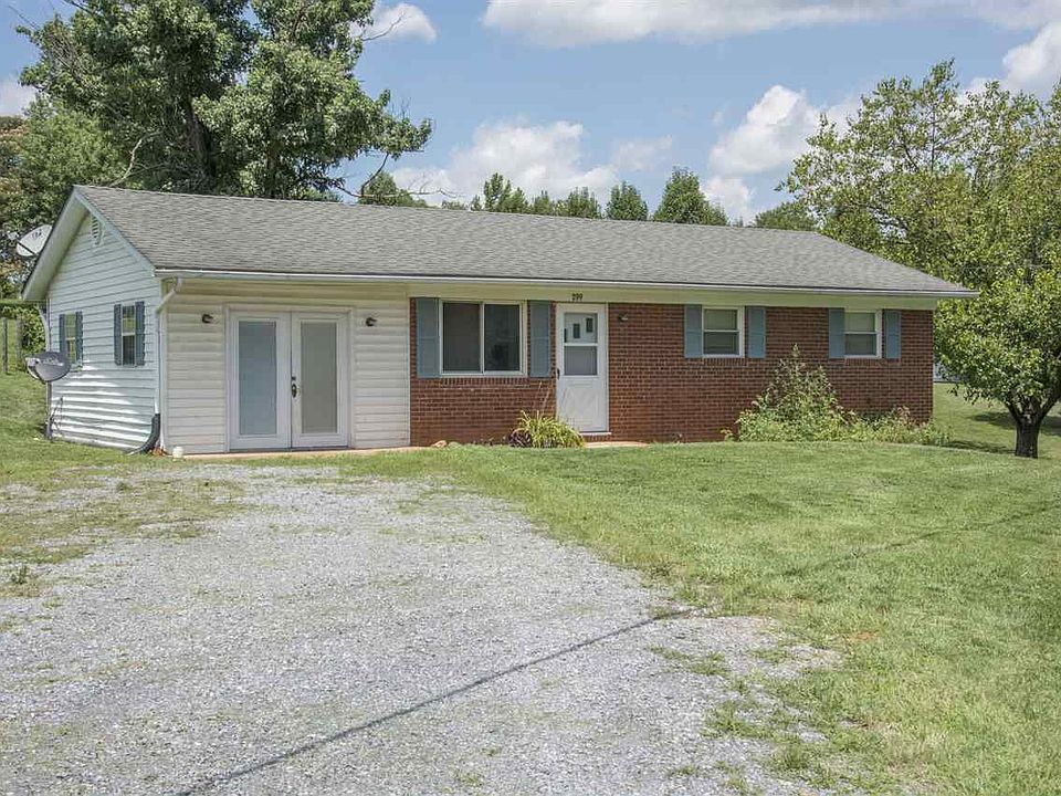 Cozy 2 bedroom, 1 bath brick Rancher, perfect for the first time homebuyer or anyone looking to downsize. Great location, close to town but with your own privacy and beautiful views of the Blue Ridge Mountains. Features hardwood floors, large living room and big master bedroom. Move-In Ready! Just outside town limits, County taxes only!