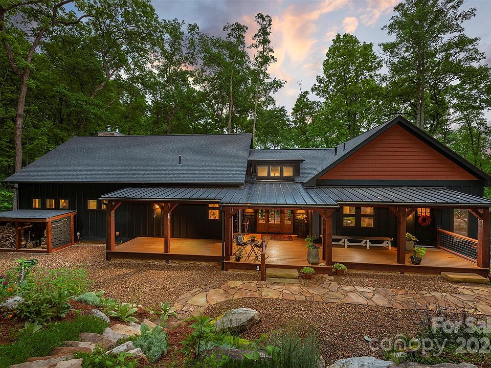 Custom-built Craftsman-style home offers an exceptional living experience with modern luxury, comfort, privacy, & seclusion just 18 minutes from downtown Asheville. Living, dining, & kitchen areas are combined into an open space with 10-ft ceilings, rich hardwood floors & high-end finishes throughout. Chef's kitchen with island, chef's pantry with fridge & copper bar sink. Sophisticated outdoor spaces are an invitation to linger. The primary suite features a walk-in closet, laundry & full bath. 2nd primary boasts a separate entrance, vaulted ceilings, mini-fridge, & ensuite bathroom. Daylight basement w Pella sliding glass doors & 9-ft ceilings is a haven for relaxation & entertainment, featuring a workshop with a utility sink & French doors & a bonus room plumbed for a 3rd bedroom. If you dream of main-level living with ample, level parking, convenient to hospitals, groceries, & more, this tranquil wooded retreat is a must-see! Direct access to the Mountains-to-Sea hiking trail.
