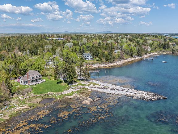This custom built, stunning oceanfront home on Seal Harbor grants endless and open big sky with unobstructed ocean views toward Whitehead, Norton and Seal Islands just to name a few. First floor oversized windows and full glass doors make sure this house never lets you forget the beautiful frontage of this unique property that also has its own breakwater pier and waterside boat and storage shed. A natural stone depression creates a tidal pool off the lawn at low tide. Offering a first floor living option, this house has four bedrooms including a separate guest area with it's own bath above the garage. Solidly built and smartly designed, take advantage of the opportunity to make a few cosmetic changes to make this private waterfront home your own while being just twenty minutes to the stores, shops and restaurants of Rockland Harbor.