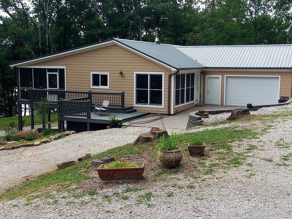 Buyer agents welcomed at 3%, but please do not contact us about listing our home. 2015 Amish custom built home. First floor is 1200 sq. ft. 1 bdrm., 1 1/2 bath, screened 14x44 ship lap living area overlooking Nolin Lake. Second bed inside screened living area provides awesome seasonal sleeping quarters, with plenty of room for entertainment. Tile atrium with large double paned windows providing excellent lighting. Hardwood walnut flooring and porcelain tile throughout entire 1st level. Hickory kitchen island, lots of custom built maple cabinets, and black marble granite counter tops. 3 sets of double french doors each leading from kitchen, living room, and master bedroom, to the 14x44 screened living area overlooking the water. Matching kitchen stove, refrigerator, above counter microwave, and dish washer remain. 528 sq. ft. attached garage. Full unfinished basement with plenty of room to add more living space. Shower/tub, and porcelain tile already purchased for basement, as we had intentions of refinishing ourselves. Triple insulated chimney for a wood stove in basement if desired. Property includes a 1 bedroom, 1 bath cabin with screened porch overlooking lake, fully functional and approximately 600 sq. ft. We lived in the cabin for over a year while house was being built. House and cabin are on separate lots if new owners should decide to separate for selling purposes, would just need to resurvey. House, cabin, 4 waterfront lots totaling approximately 1.5 acres, with 240 feet of lake front property at the red line, and boat slip that transfers to new owners with COE approval. Selling due to corporate position relocation. This was our retirement home and we have well over $300k invested. We will never recoup our investment in this beautiful waterfront home. Our loss will be someone else's huge gain. Potential buyers please call owners directly (270) 312-8476, 48 hours in advance and make an appointment. Property is inside locked gates and not accessible otherwise. Thank you. Buyer agents welcomed at 3%