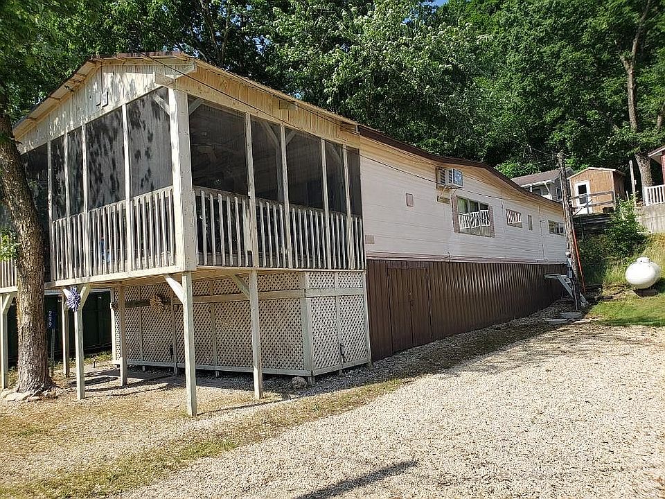 Step into this beautifully renovated 2 bed, 1 bath cabin located on a quiet dead-end in Wille's Resort in Garnavillo, Iowa. The open floor plan offers a bar-top island in the kitchen and spacious living room to accommodate guests. Oversized primary room contains ample closet space and access to electrical panel and water heater. The second bedroom contains a beautifully custom-made oak twin-size murphy bed and laundry area. Spend rainy days or beautiful evenings on the roomy screened in porch equipped with electricity, newly installed outdoor ceiling fans, and outdoor TV set-up. Utilize the newly sided outdoor shed as a fishing shack or hobby shed. Updated with new electrical and water-proof laminate flooring. Host guests with an additional lot across the street for parking.