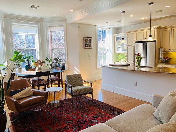 Condo quality 2nd floor 2 bed 2 bath floor through residence on sunny side Marlborough Street. Beautiful open and spacious kitchen/living room. Built-ins, hard wood floors throughout, in unit laundry, central AC. 1 TANDEM parking space included. Last, Security and Broker Fee