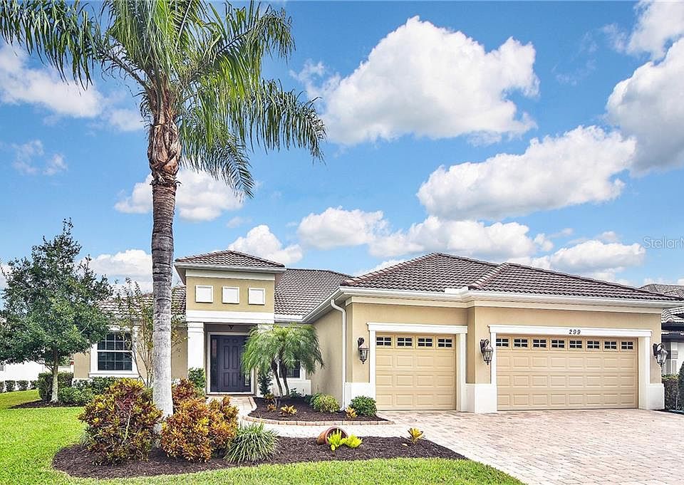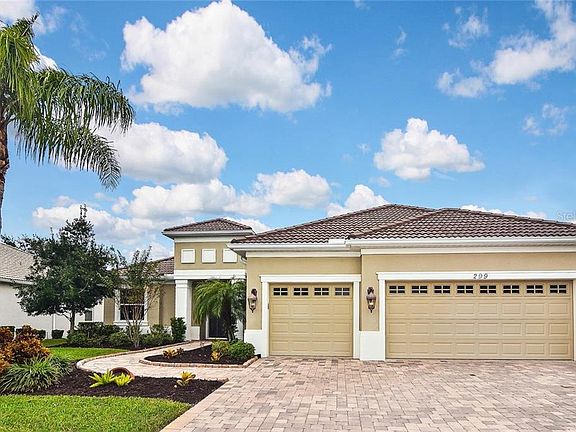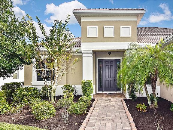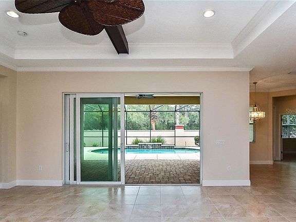 Live the luxurious lifestyle from this dazzling three bedroom plus office, three bath, three car garage home located in the beloved gated community of Sawgrass. This red ribbon home has new tile floors throughout with new carpet in the bedrooms and has been freshly painted in soothing neutral tones. $40,000 in upgraded PGT hurricane windows and doors will provide you comfort and security. The host in you will love the open kitchen which overlooks the living and dining rooms where you can prepare delicious meals and feel like you are part of the action from the kitchen, which boasts light wood cabinets and stainless steel appliances. Guests will fawn over the beamed ceiling in the living room. Work with ease from the spacious office located just off the breakfast nook and overlooking the pool. Split bedroom plan offers plenty of privacy for you as well as your guests with two additional bedrooms and bath. Retreat to your lavish master suite with tray ceilings and sliders that open up to the pool area. The expansive bath offers separate vanities, a large glassed walk in shower and a relaxing tub. Escape to the outdoors and enjoy the pool and water feature while you dine al fresco with family and friends on the spacious covered lanai with a convenient pool bath just steps away. This Red Ribbon home is move in ready! Sawgrass amenities include a lovely clubhouse, heated community pool, fitness room, game room and tennis courts. Located within 10 minutes of Venice Beach, theaters and dining.