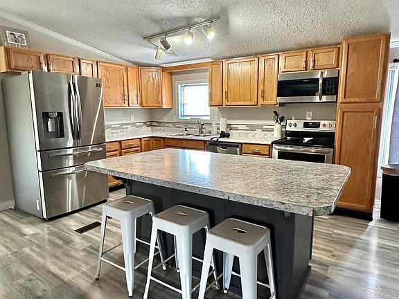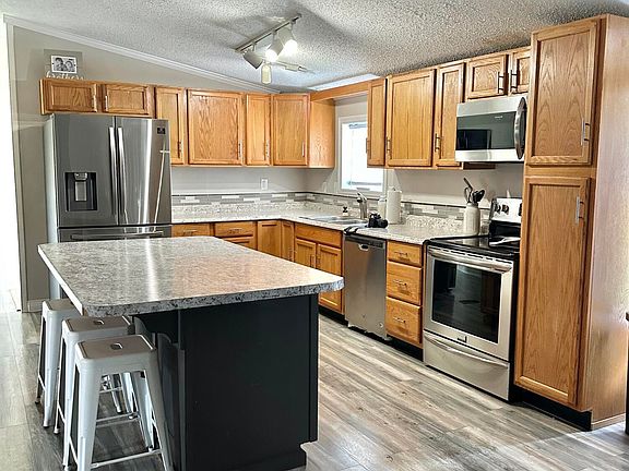 Are you ready to move in and live? This 5 bedroom, 3 bathroom doublewide was completely renovated in 2019-2020. The interior features drywall throughout, new in 2020 kitchen cabinetry and countertops; bathroom fixtures; 4 ton HVAC; metal roof; front and back decks. There is so much living space with the wide open floorplan that flows from the living room to the kitchen to the dining area to another area that can be used however you like. It sits on a large surveyed corner lot with a long concrete driveway and large storage shed and the subdivision has underground utilities. All appliances stay
