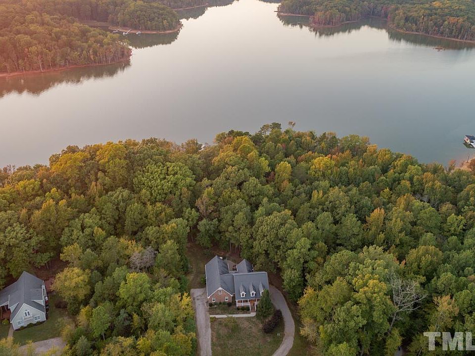 KERR LAKE WATERFRONT BRICK HOME in upscale, gated neighborhood, offering quality construction, space, location, covered alumadock w/ lift in deep water, & WATERVIEW. Two separate 2-car (or boat) garages. 1st floor has open concept LR-kit w/ sep. DR, master suite, plus 2nd BR & bth, office & laundry. 2nd floor has bonus, 2 BR's & bath. Lower level 4rd bth. Front concrete porch, rear screen porch, deck & stone patio w/ fire pit. Expansion potential in unfin'd superior wall basement & in huge unfin'd attic.