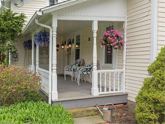 Exquisite Century Home in Bath. Steeped in rich history but complete with modern day upgrades and conveniences. Nestled on 1.3 scenic acres. This stunning home is recognized on the National Register of historic homes. Beautiful hardwood floors, original hardwood floors and exposed stone. A gracious Living Room includes custom corner cabinets. The large Dining Room is perfect for entertaining. The remodeled updated Kitchen features a custom island, newer cabinets, countertops, sink, plus stainless steel appliances and includes a Gathering Room accented w/a gas remote controlled brick fireplace. Three upstairs bedrooms feature hardwood floors. There are 2 upstairs baths. A finished walk-out lower level offers a Rec Room/bedroom. Fabulous stone walls. you'll love the 3 car garage/carriage house equipped to accommodate trucks, campers, etc. A finished 2nd level provides additional space for a studio, game room, etc. Additional amenities include roof 2010, whole house insulation 2013, exterior paint 2010, windows 2005, 50 gallon hot water tank 2015, newer aeration water filtration system and wireless security system.