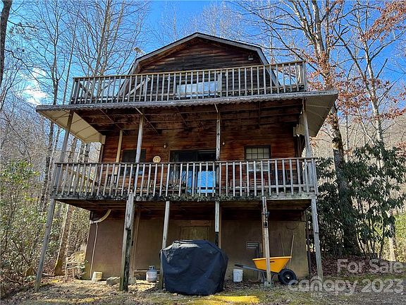 Mountain cabin backing up to Pisgah National Forest tucked away from it all. This one bedroom 2 bath home is situated on .57 acres. You can walk out your door into the National Forest. The home is currently being used as a vacation rental so PLEASE NO DRIVE BYES. The main level features a large living area, kitchen, dining area and full bath. Upstairs you will find a large bedroom with plenty of room for multiple beds. There is a laundry room and additional full bath on the second floor. Both decks will need to be repaired/ replaced soon. Roof needs to be cleaned or replaced. This cabin in being sold as is. Home is serviced by a Spring. Showings will be available Monday Feb 6th after 12 noon - Feb 10th at 1pm. All personal property conveys.