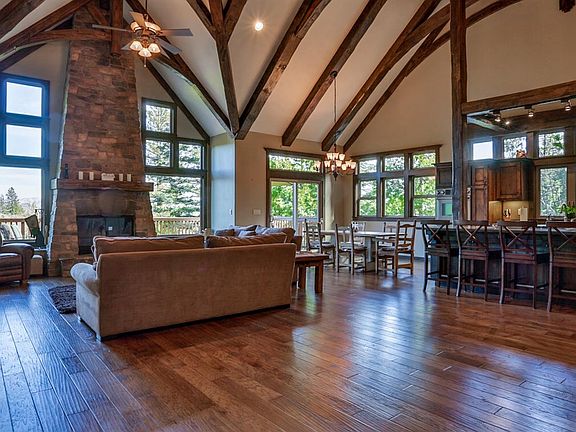 You won't want to miss this gorgeous home built by Doug Ferguson. True craftsmanship is exhibited throughout this home. Vaulted ceilings with custom beams and a wall of glass to take in the views greets you. Open and inviting, the kitchen is a cook's delight with stainless steel appliances with space galore, master bedroom with fireplace on the main level, another huge bedroom on the main level too. Lower level has a family room with pool table and wet bar with three additional bedrooms. Don't miss the expansive decking featuring a built in fireplace to enjoy on cool summer nights. There are 4 fireplaces, granite, hardwood flooring, beautiful bathrooms, a garage with level entry and custom touches even in it, and if this isn't enough, there is an unfinished area for expansion. You really must see the inside to appreciate this very very special home.