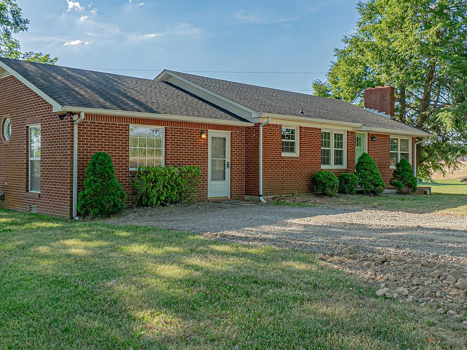 All Brick, 3 bedrooms, 2 bath with full basement, large deck, lots of interior space & storage overlooking plenty of Farm Land, Awesome Country setting, this home features new flooring, fresh paint and lighting & fixtures thru out Also detached support bldg. for storage. This is a Beautiful Ranch Home This property will be available April 15th. Renter will be responsible for all Utilities Lease includes mowing and propane fill-up