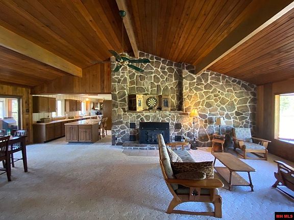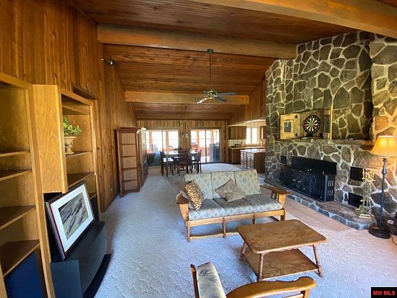 Rare Find! 320 ft of White River frontage. 2 bed/2 bath home with fantastic views of river & bluffs. Large native stone fireplace, cathedral ceilings, private dock, 30x50 pole barn with 16x50 lean to on 11.90 acres m/l.