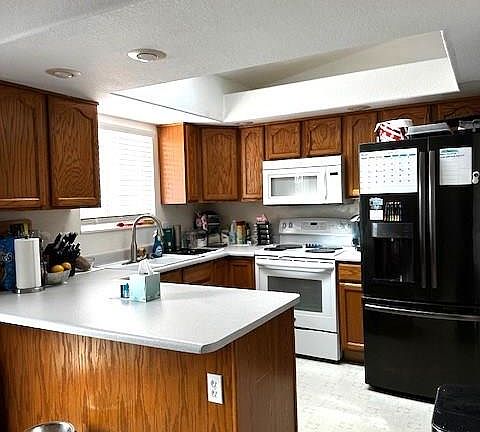 Welcome to 299 S Falcon Dr., Pueblo West! This incredible tri-level home is nestled on a spacious corner lot, offering both comfort and convenience. Boasting 4 bedrooms, 3 bathrooms, and nearly 1800 square feet of living space, this residence is sure to impress. As you enter the main level, you'll be greeted by a generous living room, perfect for relaxing or entertaining guests. The bright and cheerful kitchen is delightful with skylight, while the adjacent dining area features sliding glass doors that lead to the manicured backyard. Upstairs, you'll find three inviting bedrooms and two well-appointed bathrooms, providing ample space for the whole family. The lower level offers a cozy family room complete with a gas fireplace, the fourth bedroom, and a convenient bathroom/laundry room combo. Outside, the fully fenced backyard has been professionally landscaped to create a tranquil oasis. A workshop with electricity and a second storage shed provide additional storage space, while an automatic sprinkler system ensures easy maintenance. The garage boasts plenty of built-in storage, making organization a breeze. Situated near shopping, parks, schools, and more, this home offers the perfect blend of comfort and convenience. Don't miss your chance to make this fantastic property your own!